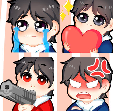 En total son 4 dibujos + una expresión (triste, enojado, etc.)